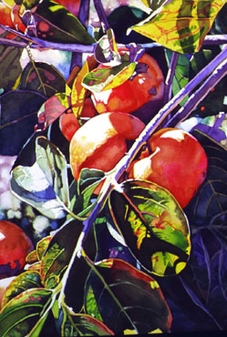 "Levin's Persimmon Bounty" watercolor Image size 28 1/2" X 19 1/2" Giclée Prints Available |